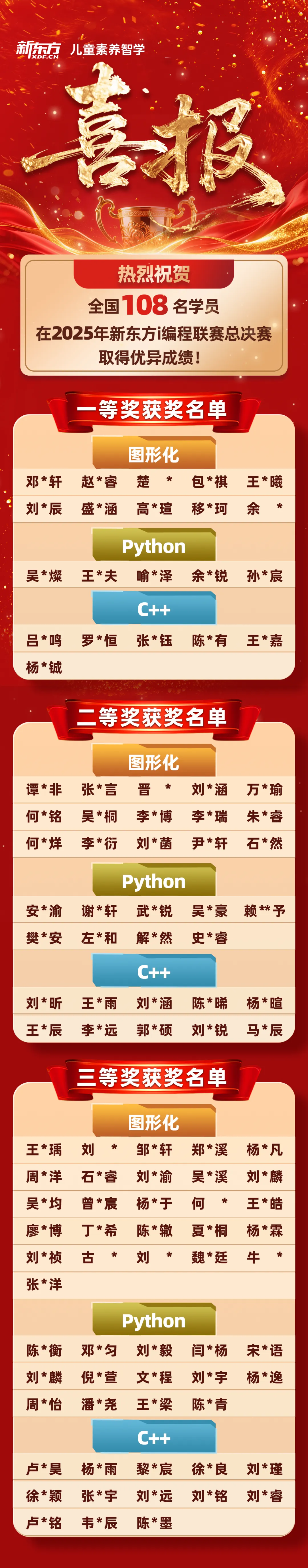未来,新东方i编程将继续聚焦编程赛事,组织更多学员们参加高含金量赛事,为孩子们提供更多优质的教育资源,助力他们成为全面发展的高素质科技人才。