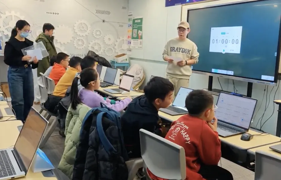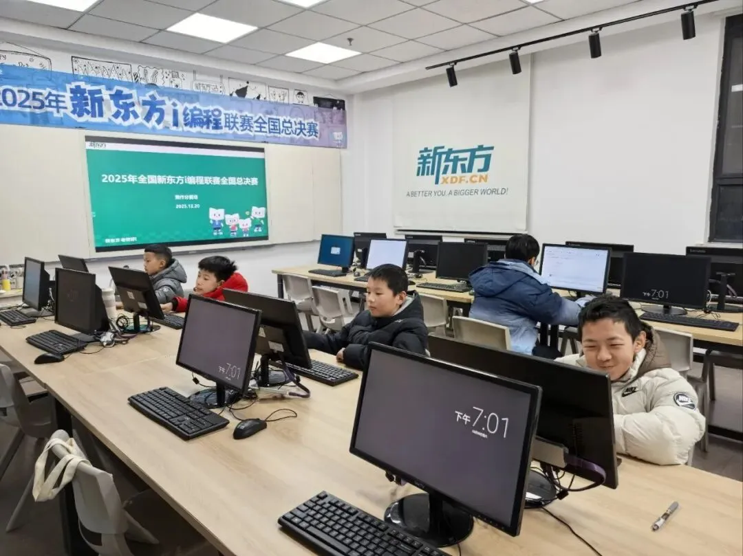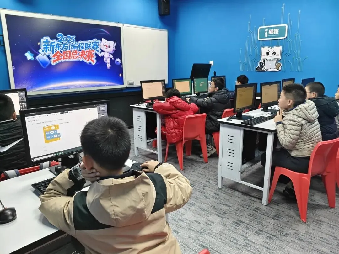 新东方小选手们在赛场上个个神情专注,面对复杂的编程任务也全神贯注。