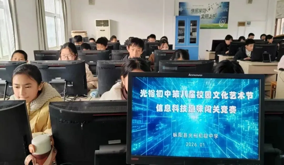 1月6日,光裕初中校园文化艺术节信息科技趣味竞赛顺利举行,全校学生齐聚赛场,以Python编程为工具展开趣味闯关比拼。