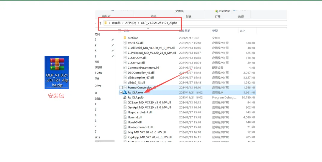 1.1 安装包解压到英文路径下即可,双击Fx_OLP.exe打开软件(也可将应用程序发送到桌面快捷方式)