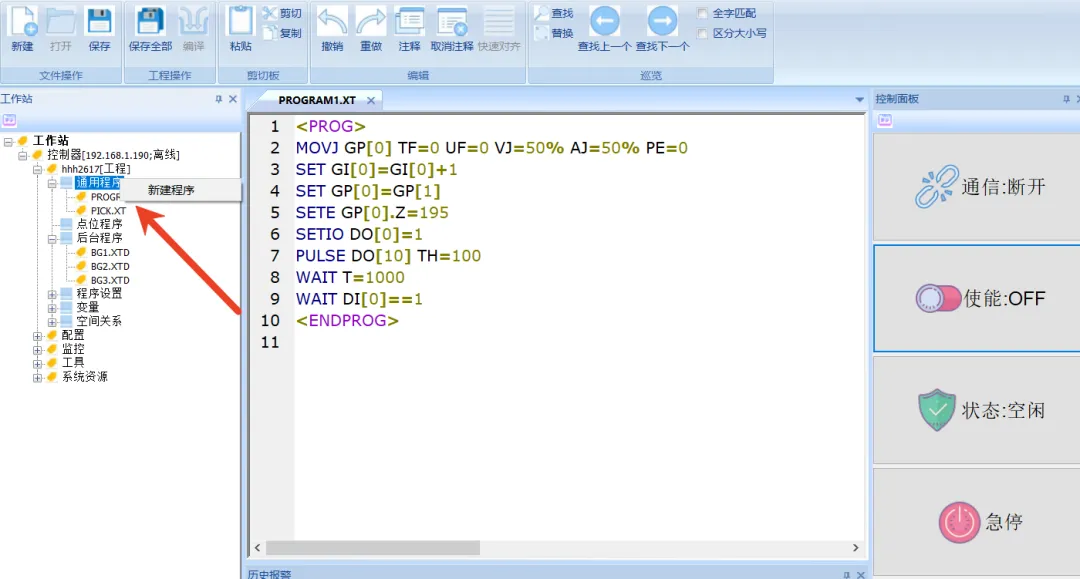 3.2 打开工程后 可新建程序 修改程序,最后别忘了保存