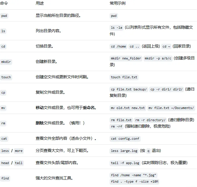记住: 遇到不熟悉的命令时,随时使用 man [命令] 或 [命令] --help 来查看最权威、最详细的使用手册。熟练运用以上命令,你就能在Linux的世界里游刃有余了!