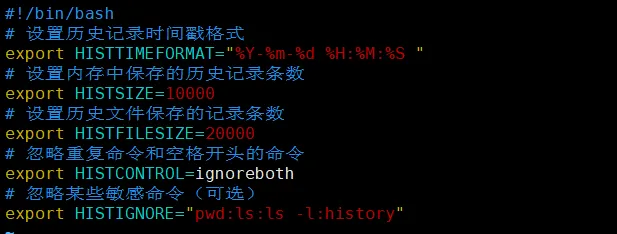 实现原理是通过设置HISTTIMEFORMAT环境变量,将每条历史记录关联的日期时间写入历史文件(系统会自动添加历史注释标记)。