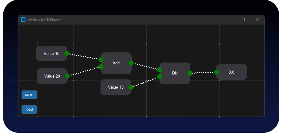 TkNodeSystem是一个基于Tkinter的Python库,它允许你使用直观的节点图(DAG,Directed Acyclic Graph)创建交互式用户界面。想象一下,你不再需要编写大量的代码来处理用户交互和数据流,而是可以通过拖拽节点、连接线的方式,以可视化的方式构建你的应用程序。这不仅提高了开发效率,更重要的是,它让你的编程过程变得更加直观、有趣!