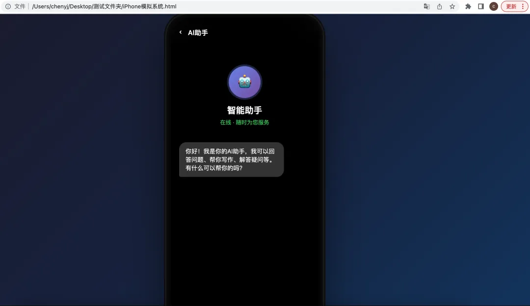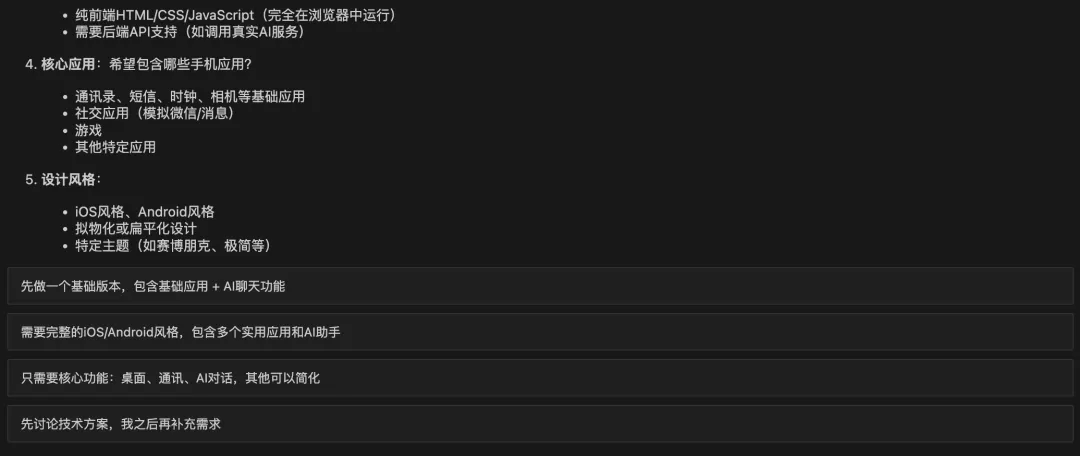 一键生成功能齐全、交互友好、具备人工智能功能的模拟手机系统。给出用户选择,这里我们选择一个完整版的,看下最终的效果如何