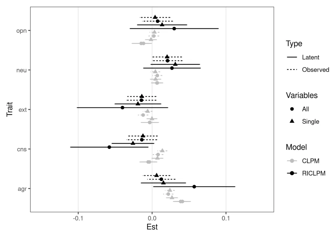 如果不能有效剥离个体稳定的特质水平,CLPM捕捉到的结果很可能具有误导性。