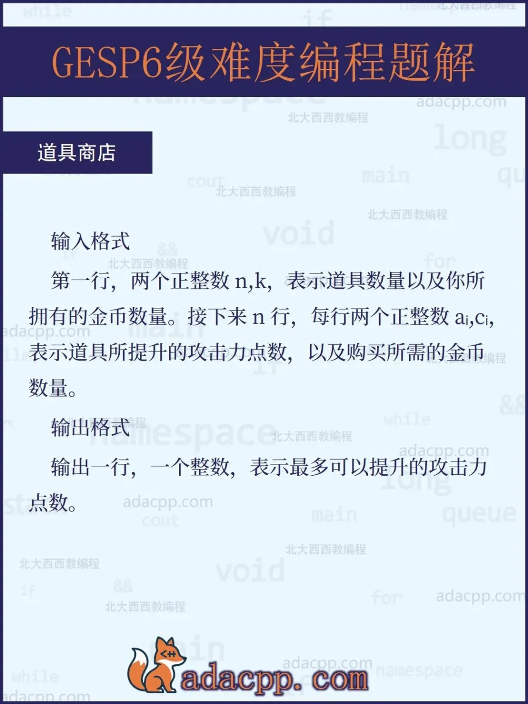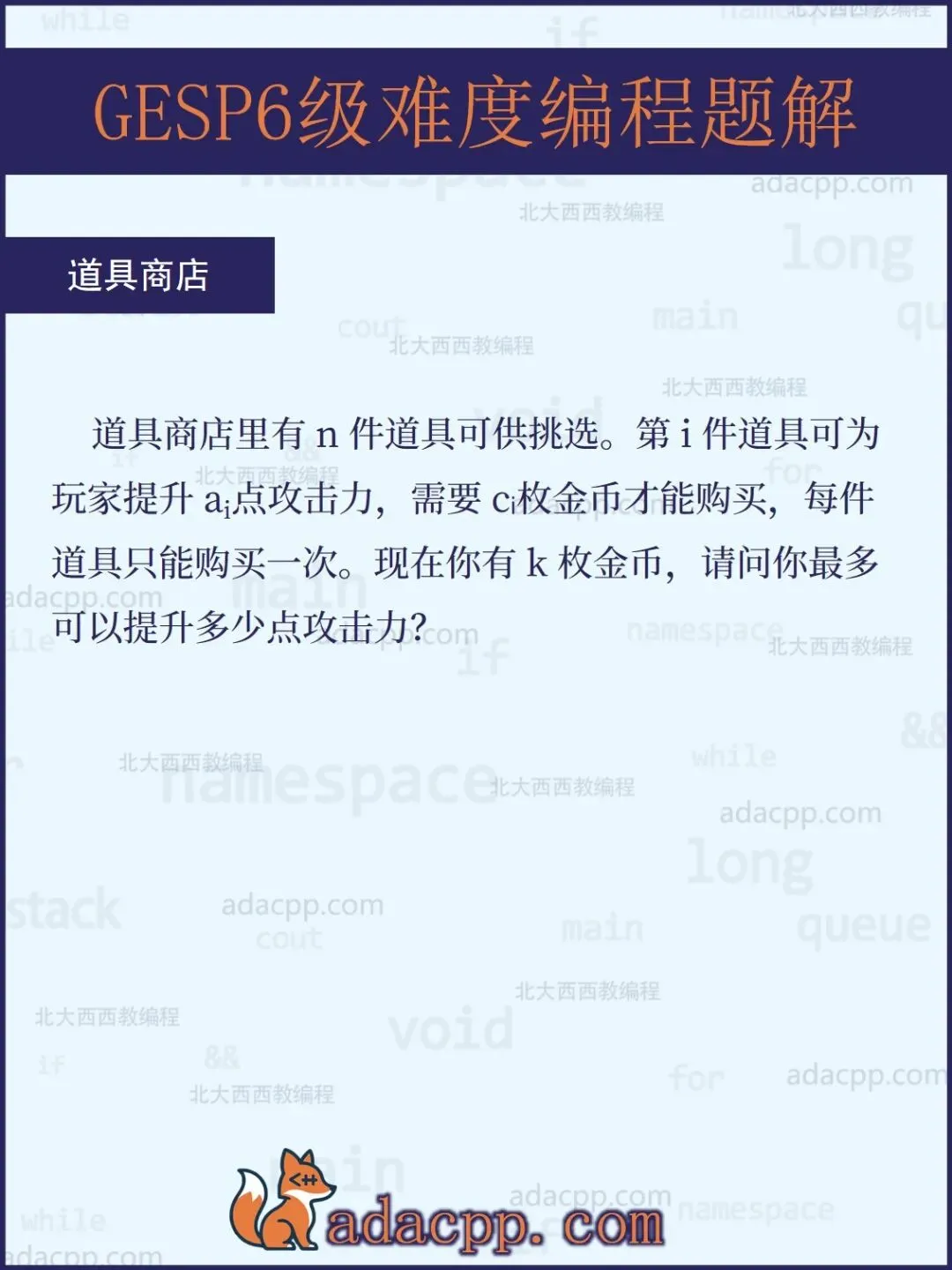 >2025年12月GESP6级难度编程题解,道具商店大冒险