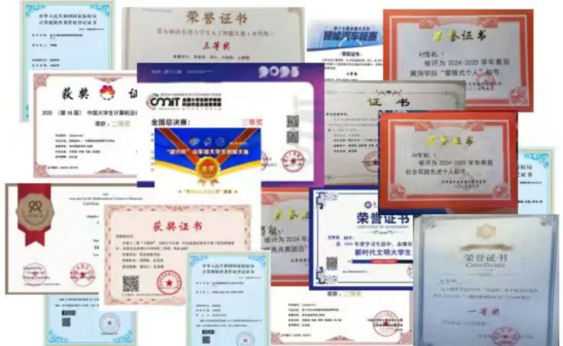 他的竞赛履历,堪称一部“理工科挑战图谱”:从全国大学生数字媒体科技作品及创意竞赛国赛三等奖,到中国国际大学生创新大赛省赛金奖;从全国大学生智能车竞赛到中国大学生计算机设计大赛、“大唐杯”全国大学生新一代信息通信技术大赛等赛事屡屡斩获佳绩。手握软件著作权6项(一作4项),并作为负责人成功立项省级、校级大创项目,他始终奔跑在技术创新与实践应用的前沿。