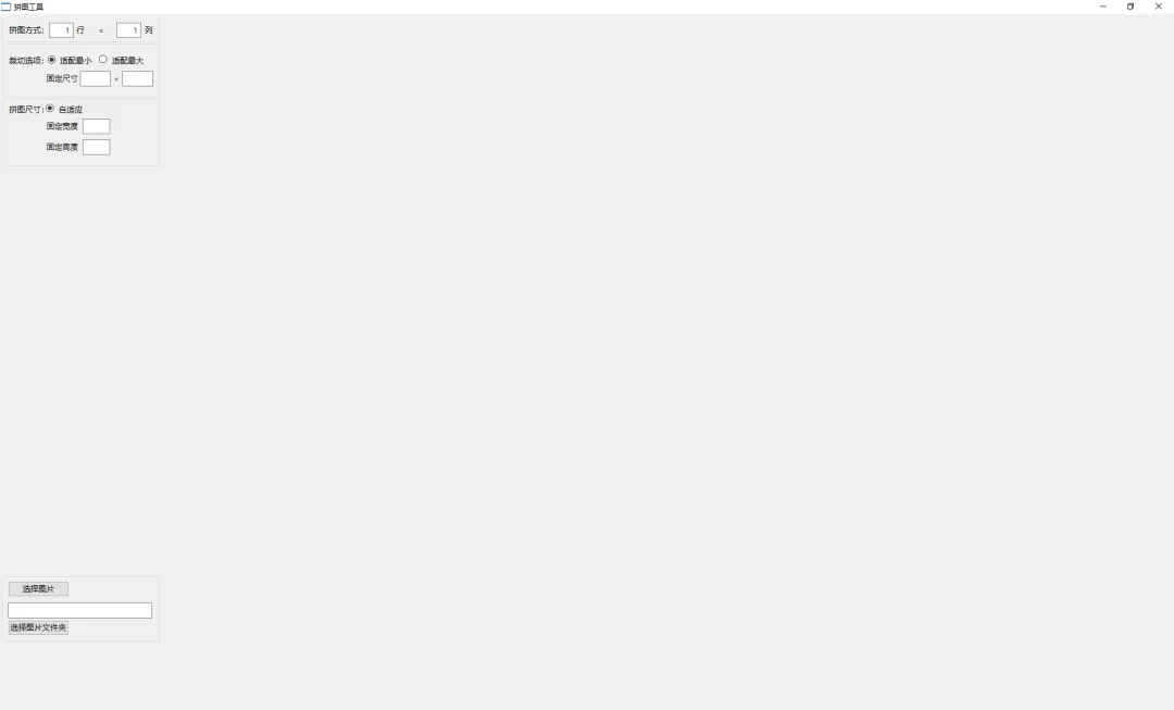 调整之后,如果最大化就会发现,控件的位置发生了变化。这个时候就用到了 aardio零基础编程学习-11 中读到的 库指南-标准库-win 窗口界面-ui界面 中的 九宫格缩放布局,当时看还不太明白,现在明白了,简单的说就是控件的相对于窗口的位置对齐方式,比如图中的“选择图片文件夹”,如果选默认的右键“九宫格缩放布局”,运行最大化后,就会发现这个按钮位于全屏下的左下角,布局挺漂亮,但是拼图尺寸的那个框拉伸了,最终结果是拼图尺寸下面也就是左侧中间一大片空白,见下图: