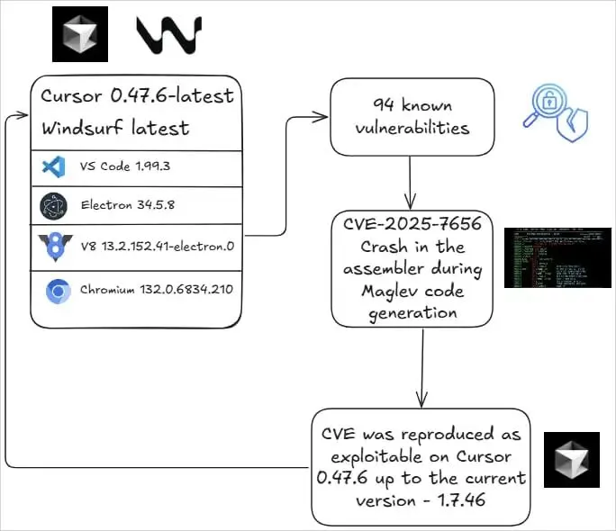 图3:CVE-2025-7656漏洞攻击链——从Cursor/Windsurf的过时Chromium版本,到94个已知漏洞的暴露
