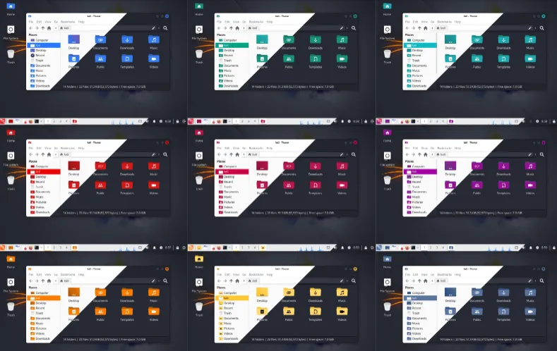 Xfce桌面Xfce 引入色彩主题支持,可以自定义安装的颜色、图标、GTK 3/4窗口、Qt 5/6窗口以及Xfce的窗口管理器装饰等新主题。
