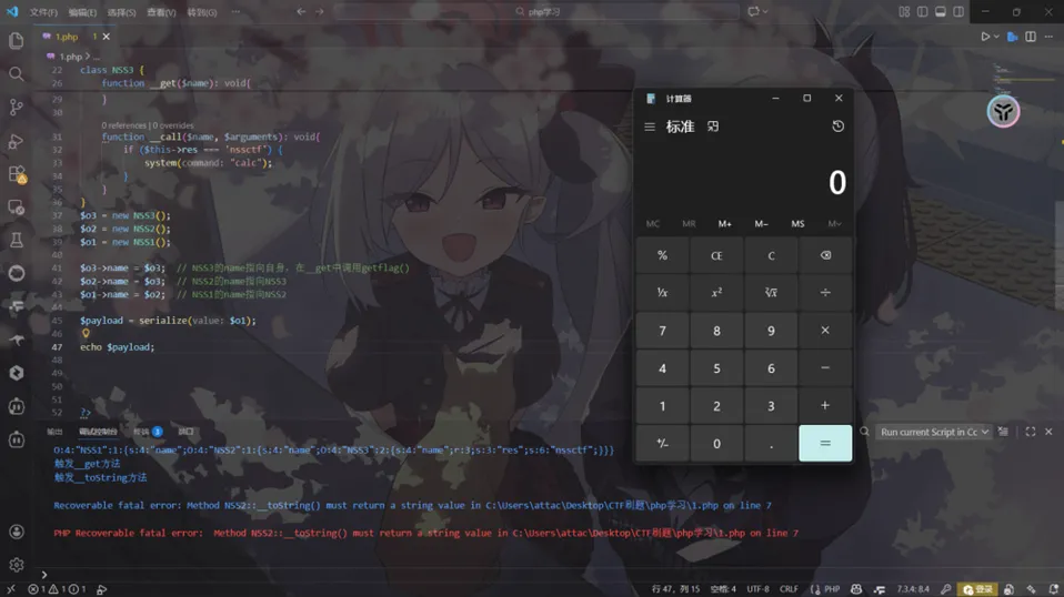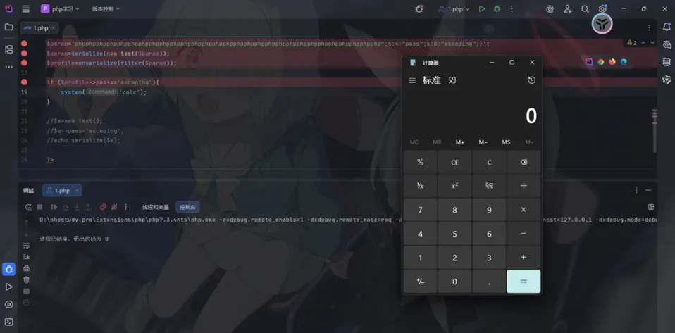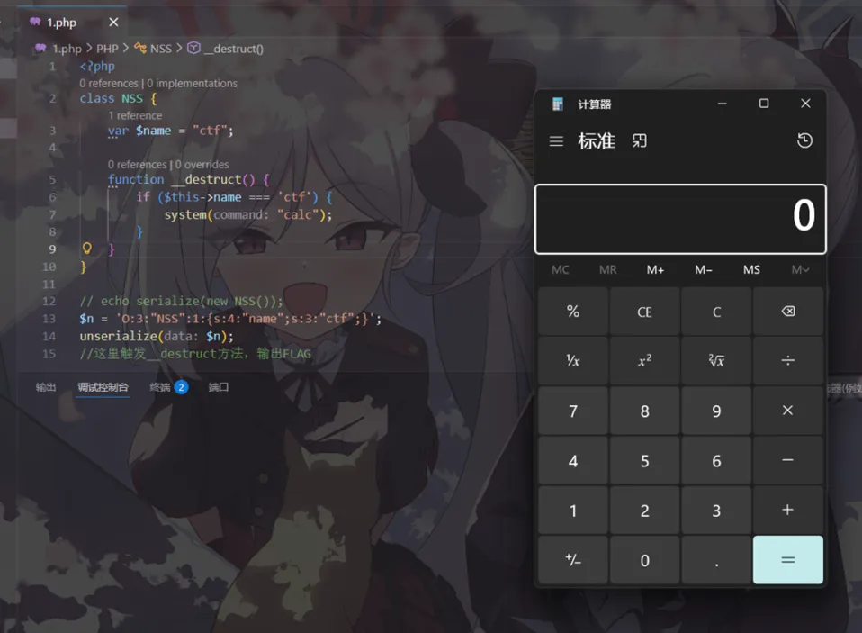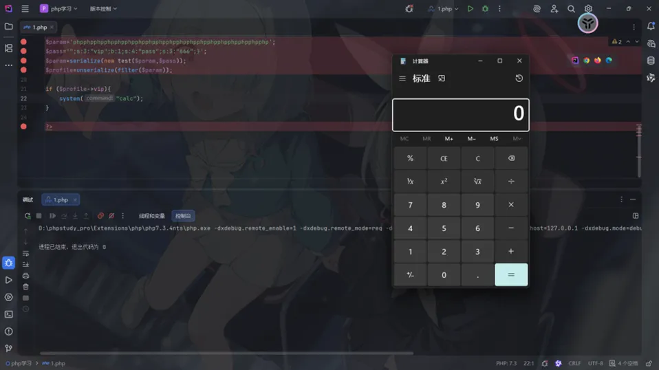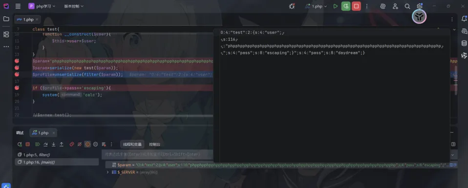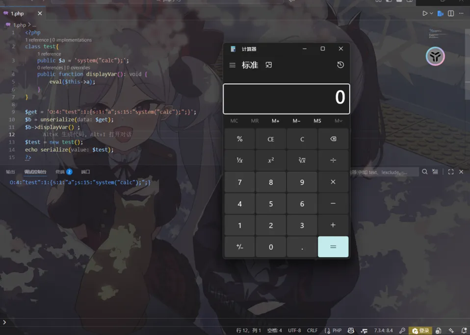 将这个值进行反序列化,为了在本地直观一些,我将echo getenv('FLAG');改成system("calc");