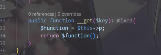 调用的成员属性不存在。__get() //用于从不可访问的属性读取数据或者不存在这个键都会调用此方法 //call和get的区别就是,call是访问不存在/不可访问的函数,get是不存在/不可访问的属性