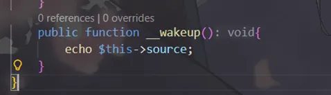 预先准备对象资源,返回void,常用于反序列化操作中重新建立数据库连接或执行其他初始化操作。执行unserialize()时,先会调用这个函数