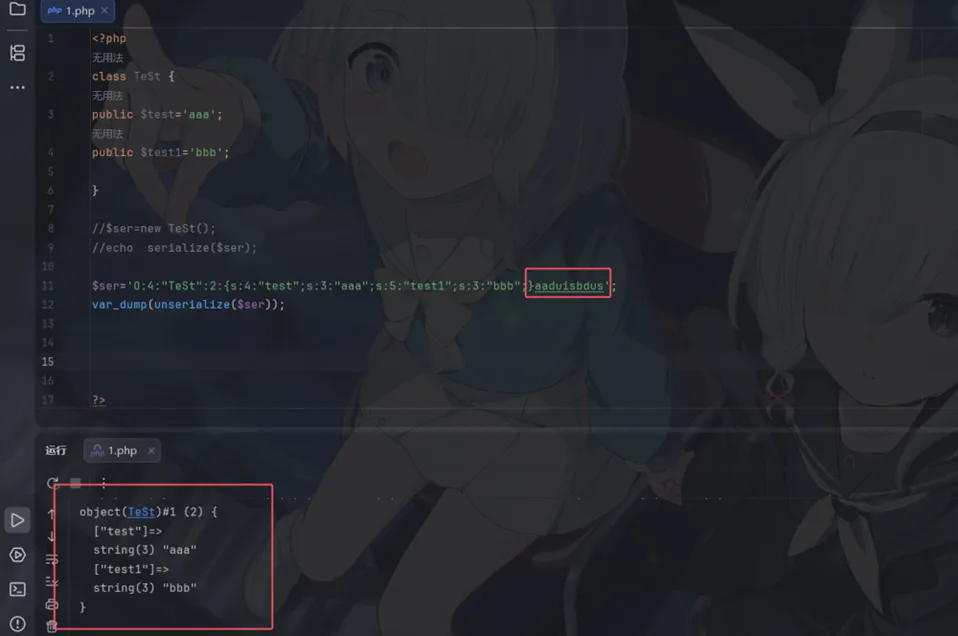 <?phpclass User { public $username; public $age; public static function __set_state($properties) {$obj = new User();$obj->username = $properties['username'];$obj->age = $properties['age'] + 1; // 可以在这里进行一些处理return$obj; }}$test = new User();$test->username = 'benben';$test->age = 20;// 这里触发eval('$newObj = ' . var_export($test, true) . ';');var_dump($newObj);?><!-- object(User)#2 (2) { ["username"]=> string(6) "benben" ["age"]=> int(21) } -->【__serialize() 和 __unserialize() 】