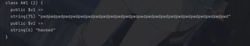 s:1:"B";R:2;:属性 B 没有再次存储 "secret",而是指向了第 2 个反序列化的值(这里指的就是属性 A 的值)。