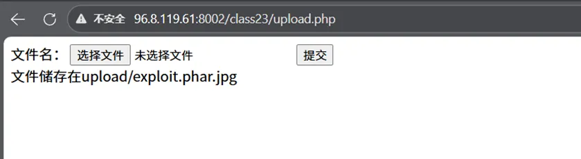 这意味着:如果你控制了文件名参数,但找不到 unserialize() 函数,你可以上传一个伪造的 .phar 文件(可以改名为 .jpg),然后利用 phar://./upload/Phantom.jpg 去触发反序列化漏洞。