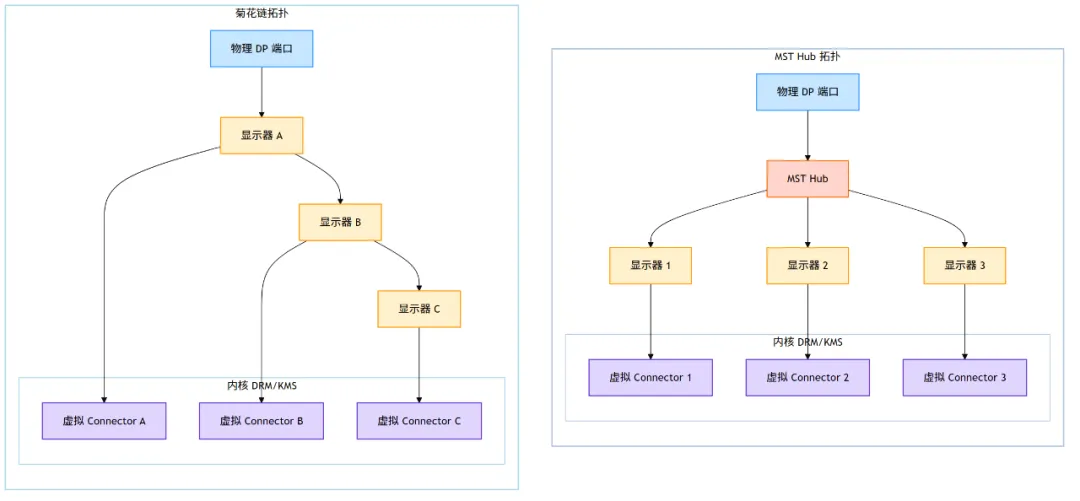 Plane 是否支持所请求的像素格式和 modifier,以及缩放比例是否在其硬件能力范围之内。 - 连接拓扑:检查