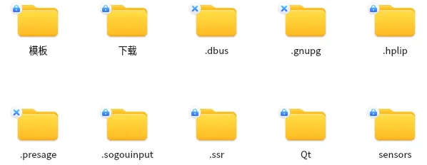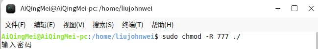 本文解决如下图所示问题,文件夹被加了锁或加了叉号,导致打开文件(夹)时提示:打开文件夹失败,您没有该目录的权限!这种情况一般出现在重装系统后访问原系统用户建的文件,或者使用过的USB设备时。方法很简单,就是修改文件或文件夹的读写权限,有很多种方法,这里使用了设置文件和文件夹对系统所有的用户都有读写执行权限,即:777。设置步骤为(1)在当前文件夹下右键鼠标,弹出上下文菜单后,选择“打开终端”。(2)在打开的终端里,输入命令:sudo chmod -R 777 ./ 输入入命令后回车,按提示输入管理员密码,如下图:输入密码后,按回车,即可看到所有文件夹都去掉了图标。如果想去掉某个文件夹的图标也可以输入命令:sudo chmod -R 777 Qt 就可以设置Qt的读写权限。这里的命令chown(change owner)是 Linux 系统中修改文件 / 目录所有者和所属组的核心命令,麒麟系统作为基于 Linux 内核的发行版,用法与通用 Linux 完全一致,常用于解决 “权限不足”“文件归属错误” 等问题,sudo 为提权操作,需要输入管理员密码,-R是递归操作,要同时修改文件夹下的子文件夹。其中,权限数字(777/755)用来表示文件或目录对三类用户的访问权限,对应3位数字: