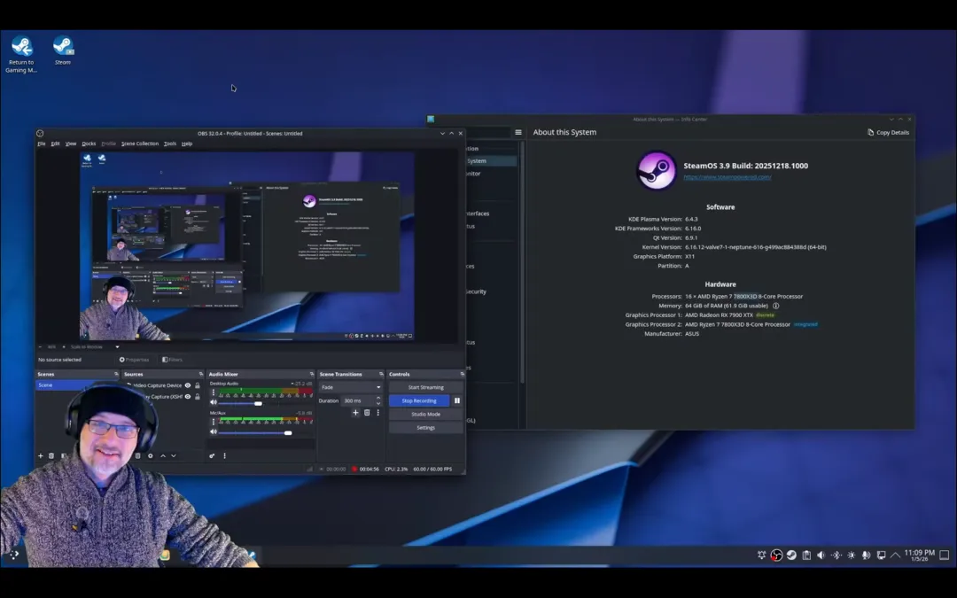 接下来,测试转向了SteamOS 3.9,硬件平台为Ryzen 7 7800X3D搭配Radeon RX 7900 XTX。博主也事先说明,在Linux环境下,AMD显卡通常比NVIDIA表现更优,这在PC玩家圈中已是共识。