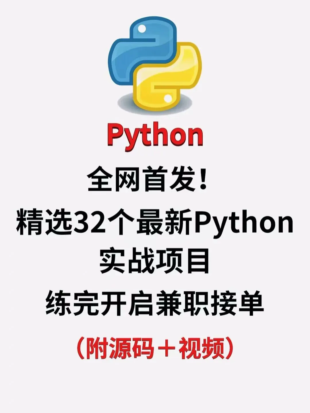 学习Python最好的方式,就是“做项目”。这32个实战项目,就像32把钥匙,帮你打开Python应用世界的大门。源码与视频已备好,剩下的,就交给你的键盘和决心。