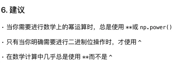 (3)需要注意的是:乘幂(**)和按位异或(^)是两种完全不同的运算方式,请参考AI给出的例子和解释: