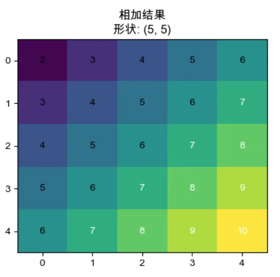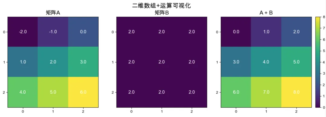 3️⃣可视化二维numpy数组的运算结果(以A+B为例):