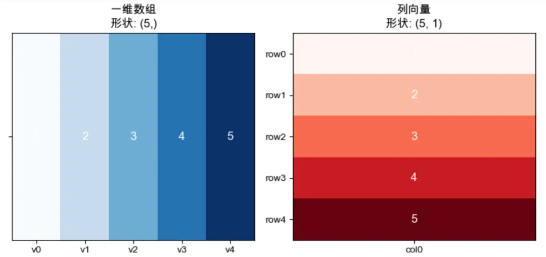 (1)这是原来的“一维数组”和“列向量”,请注意各自的形状: