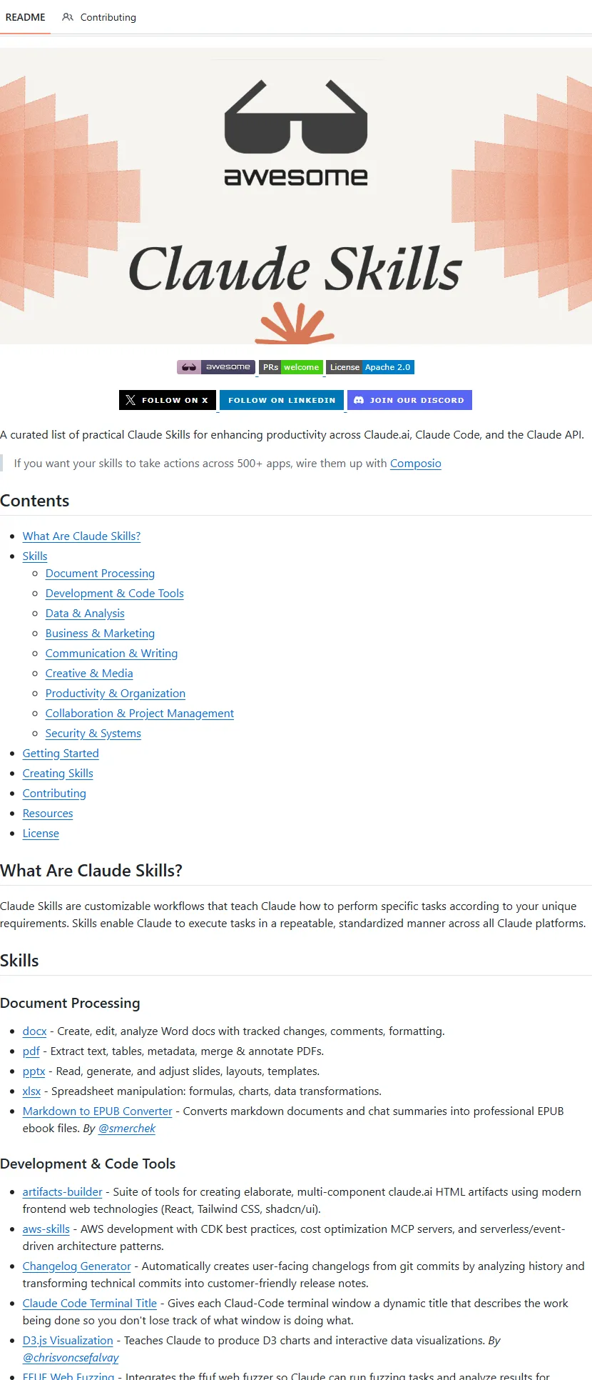 🔗 https://github.com/ComposioHQ/awesome-claude-skills