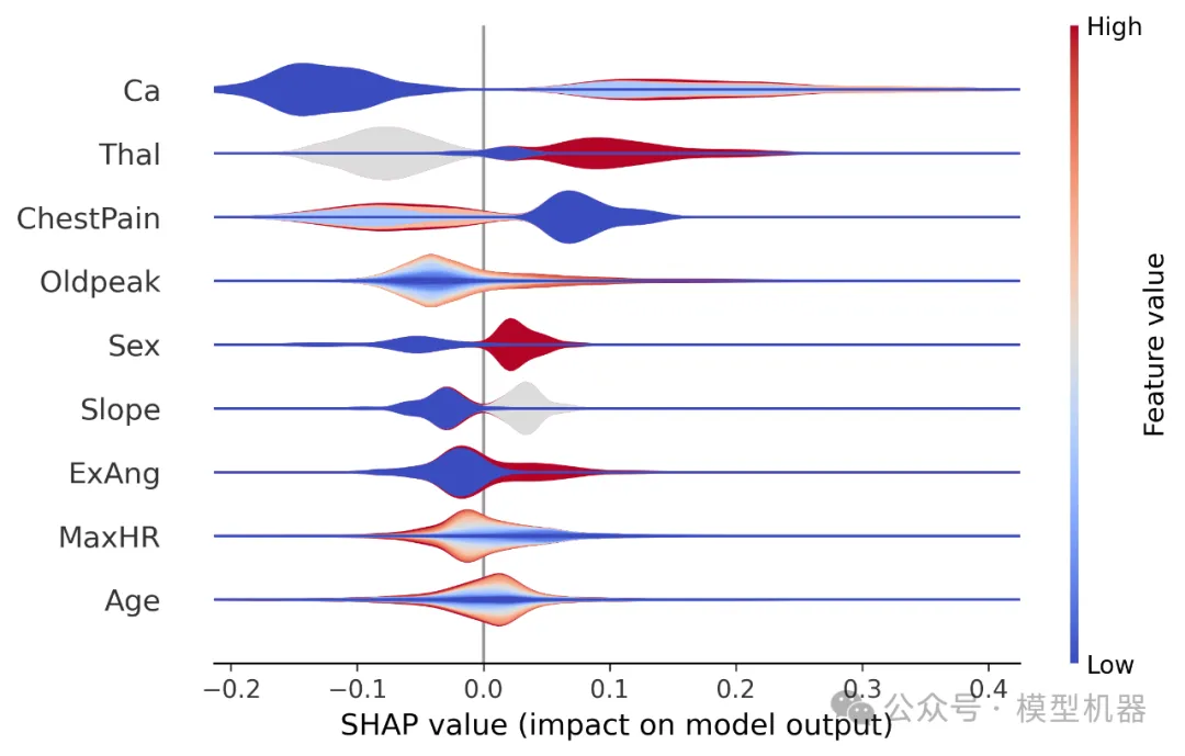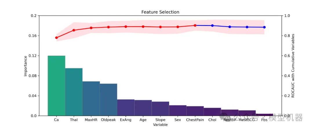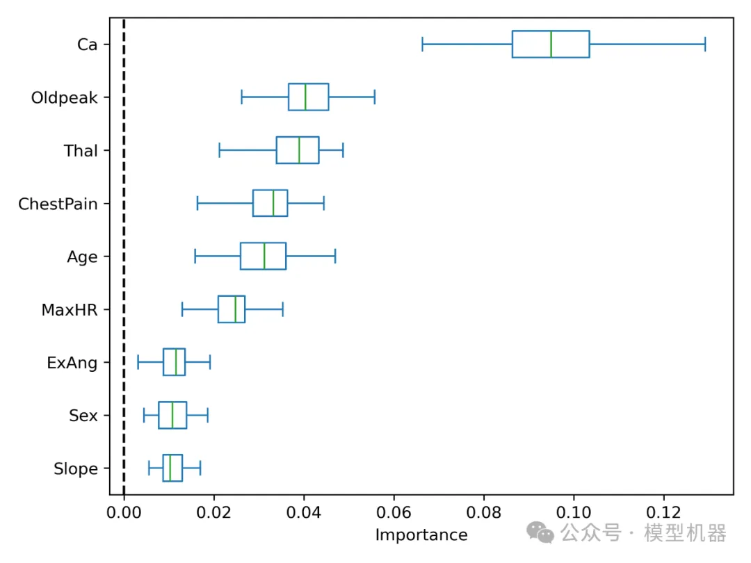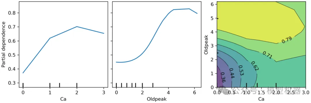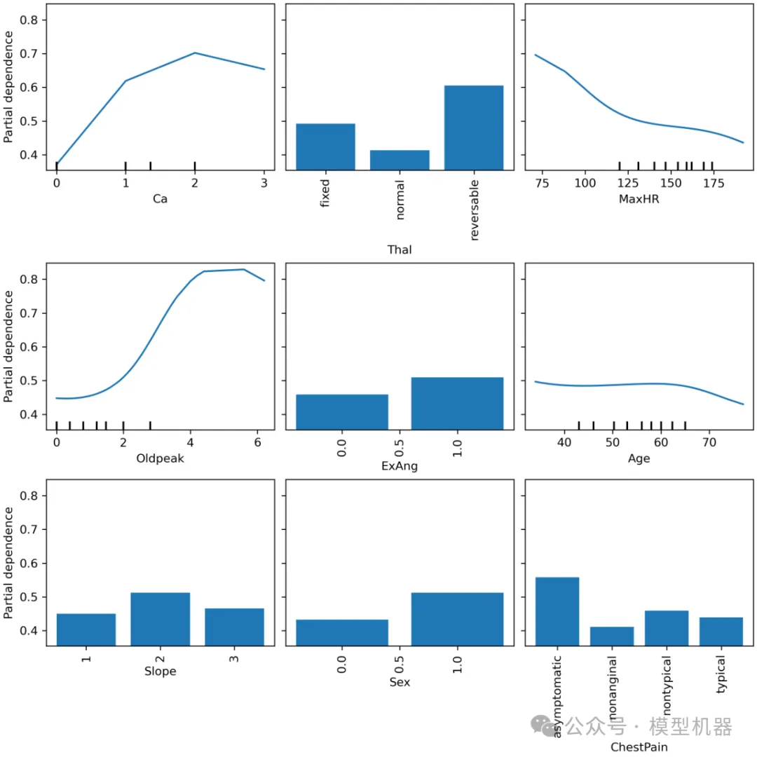 对于模型解释,代码中包含有变量重要性、偏依赖图、SHAP等图形。