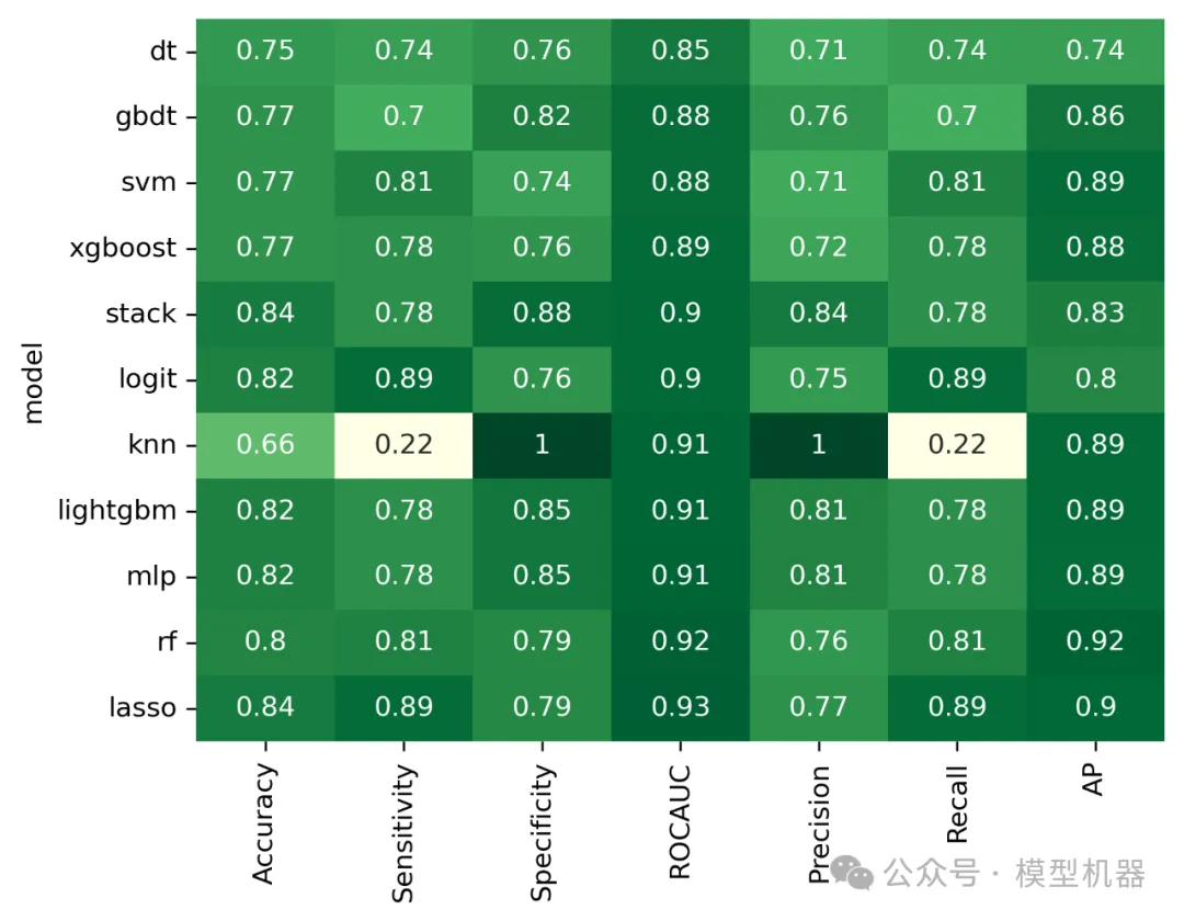 每个模型代码遵循的流程如下:数据读取、变量类型修正、描述性统计、相关性热图绘制、数据拆分、训练集测试集比较、数据预处理和模型设定、模型训练、模型预测评估、模型解释。