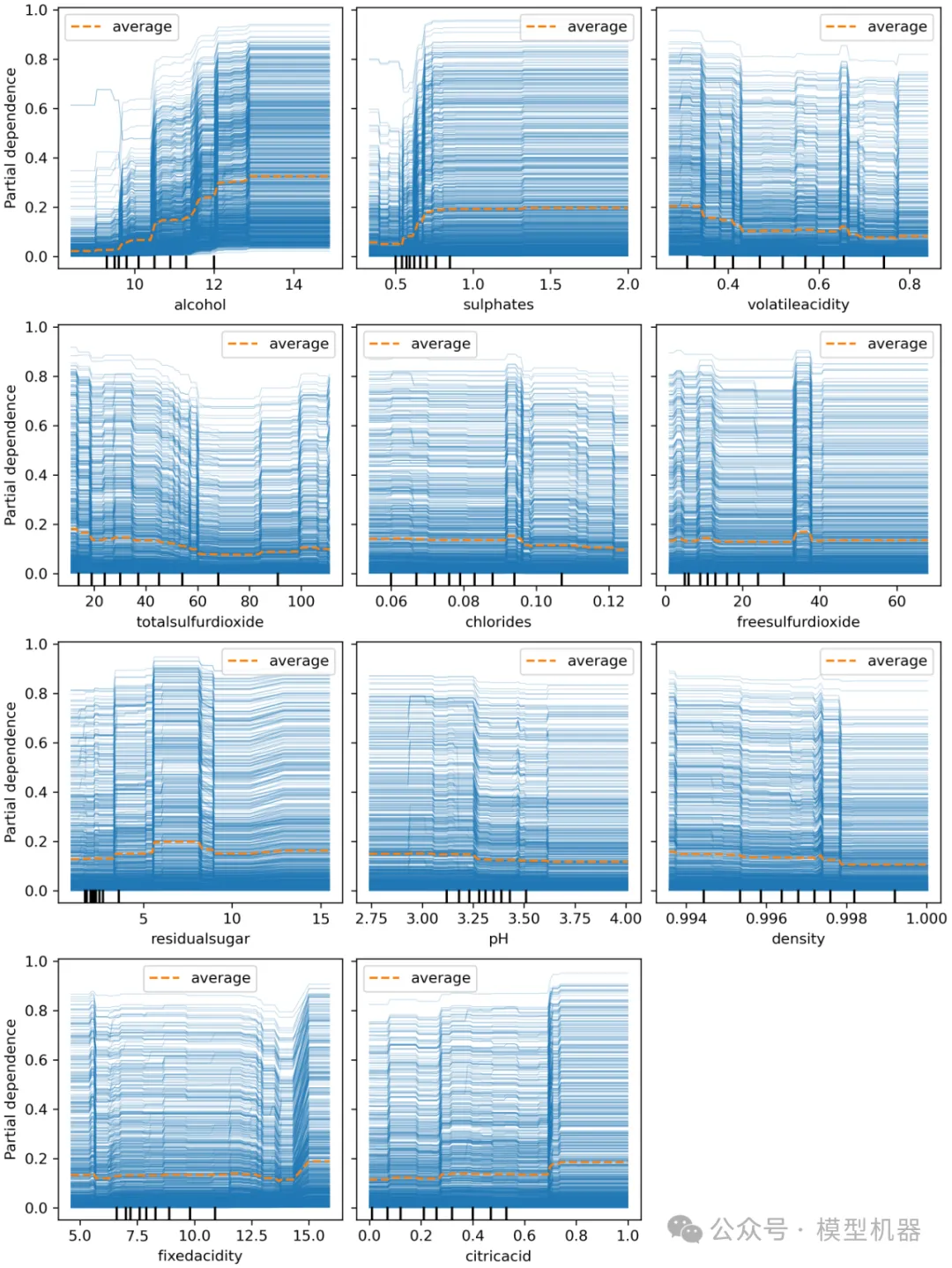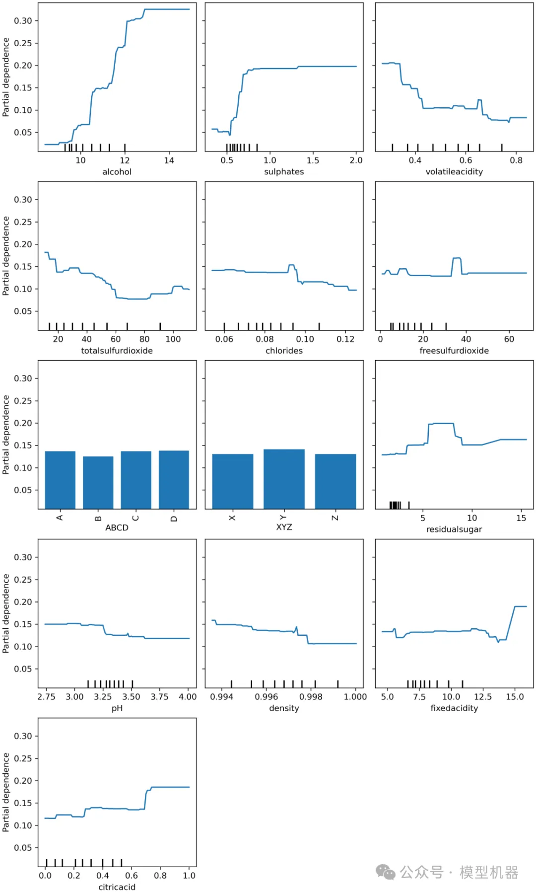 对于模型解释,代码中包含有变量重要性、偏依赖图、SHAP等图形。