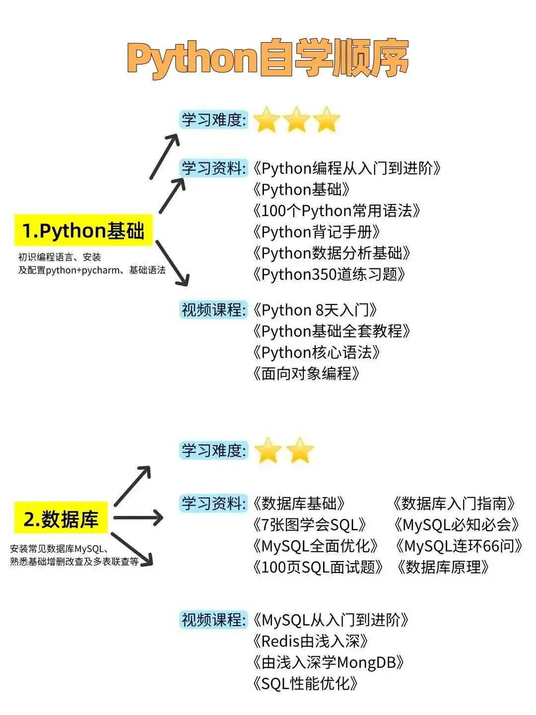 上周和朋友吃饭,他说Python自学半个月,啃语法就放弃了。我直言:你只是没找对顺序!我当初也是瞎学乱撞,直到找到一份自学清单,才终于入门。第一步:先啃Python基础(难度⭐⭐⭐)