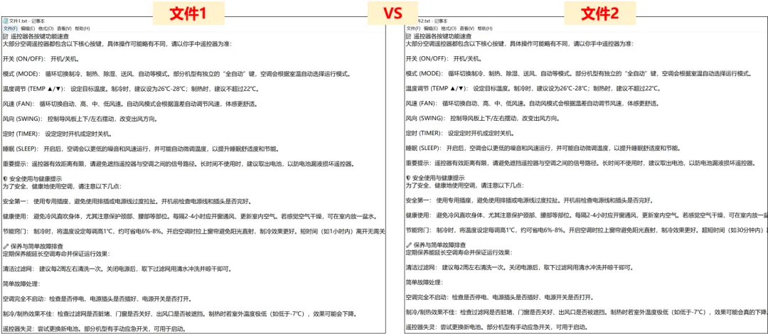 两个文本文件,肉眼看不出具体改了哪里👇: