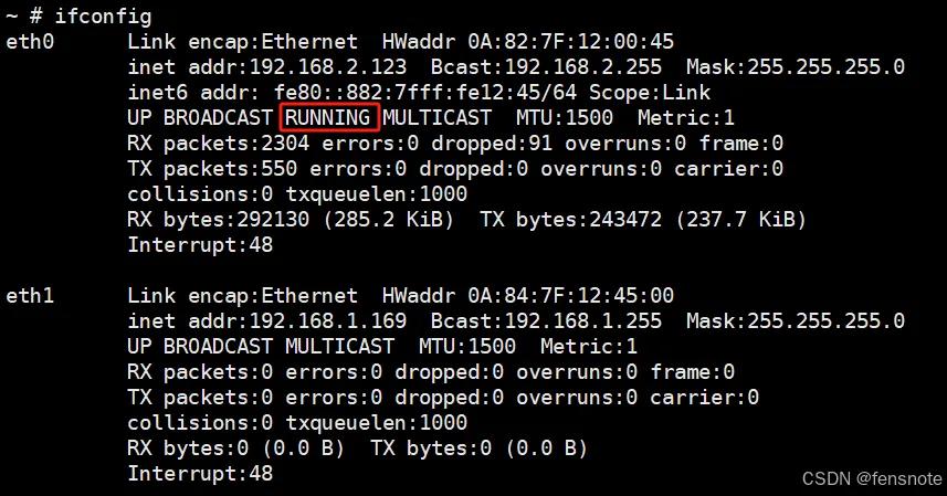 在嵌入式系统中,使用ifconfig命令查看网络状态时,