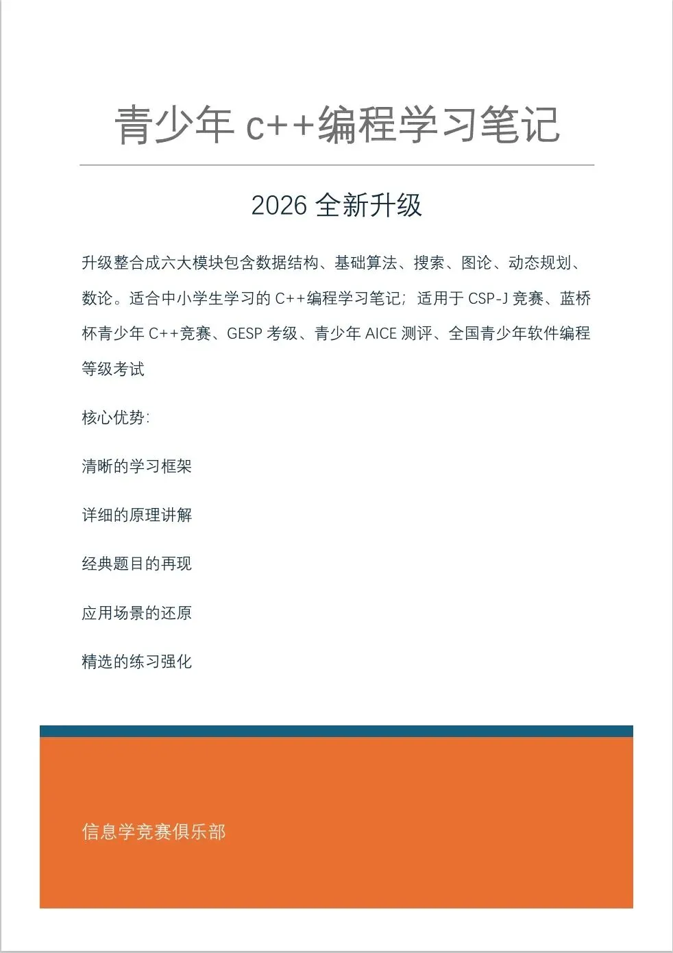 适合中小学生学习的C++编程学习笔记;适用于CSP-J竞赛、蓝桥 杯青少年C++竞赛、GESP考级、青少年AICE测评、全国青少年软件编程 等级考试