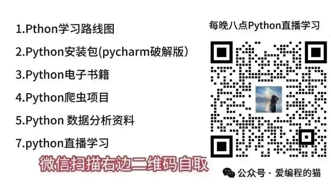 这阵子我正给大家规划学习python ,以及就业指导,也给大家准备了零基础资料学习包、课件笔记、PDF电子书、问题解答等。都可以在这里免费领取👇