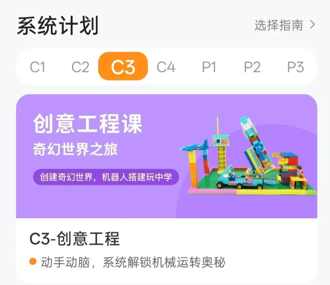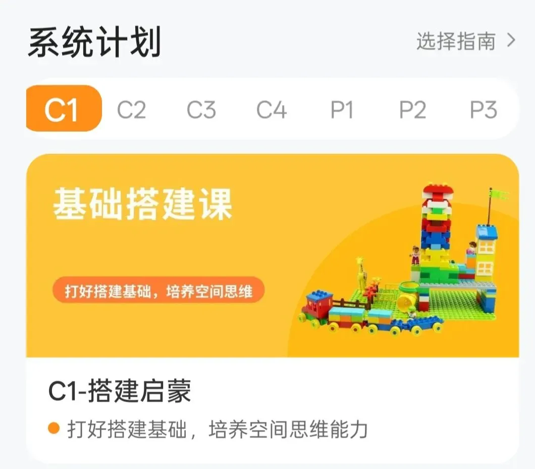 C2是能动的更有趣,很多颗粒都是平时我们没有接触过的。刚开始的课程每节课的时间也不长,却可以搭建出一些比较吸引大宝的有趣的东西。