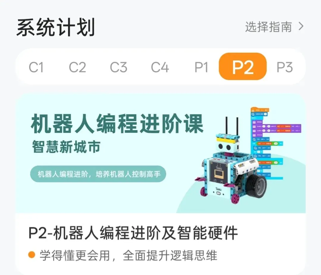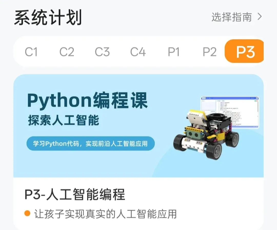 P2是scratch的进阶,我们不想花那么多时间在图形化编程上,所以没有买P2。