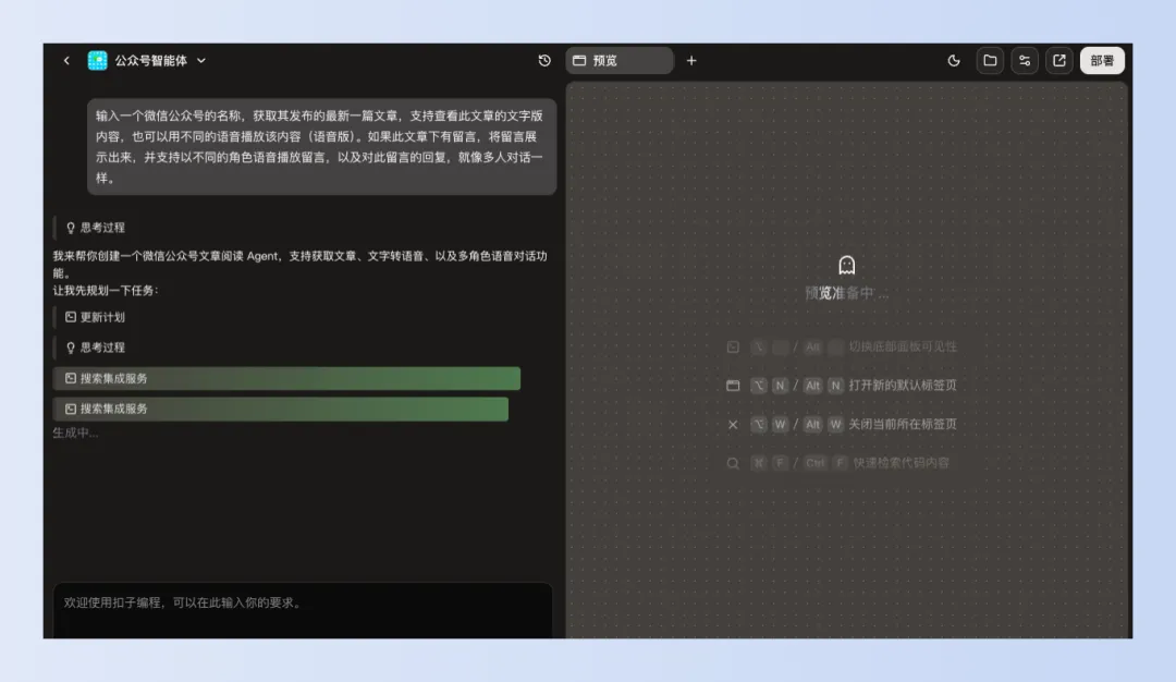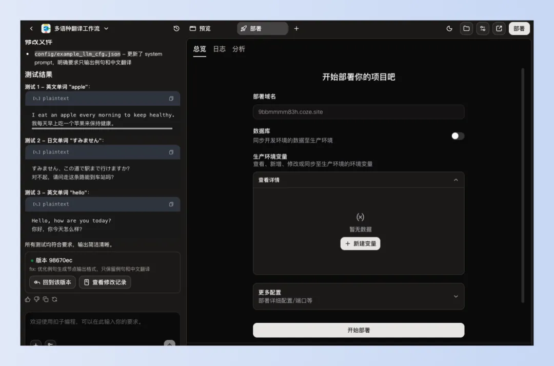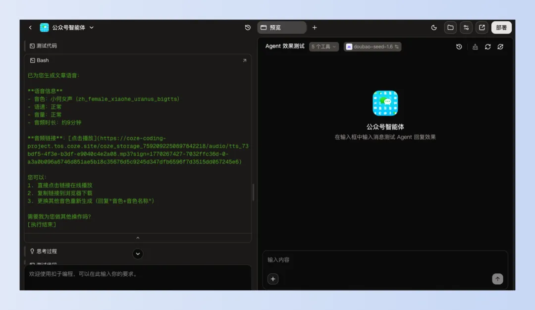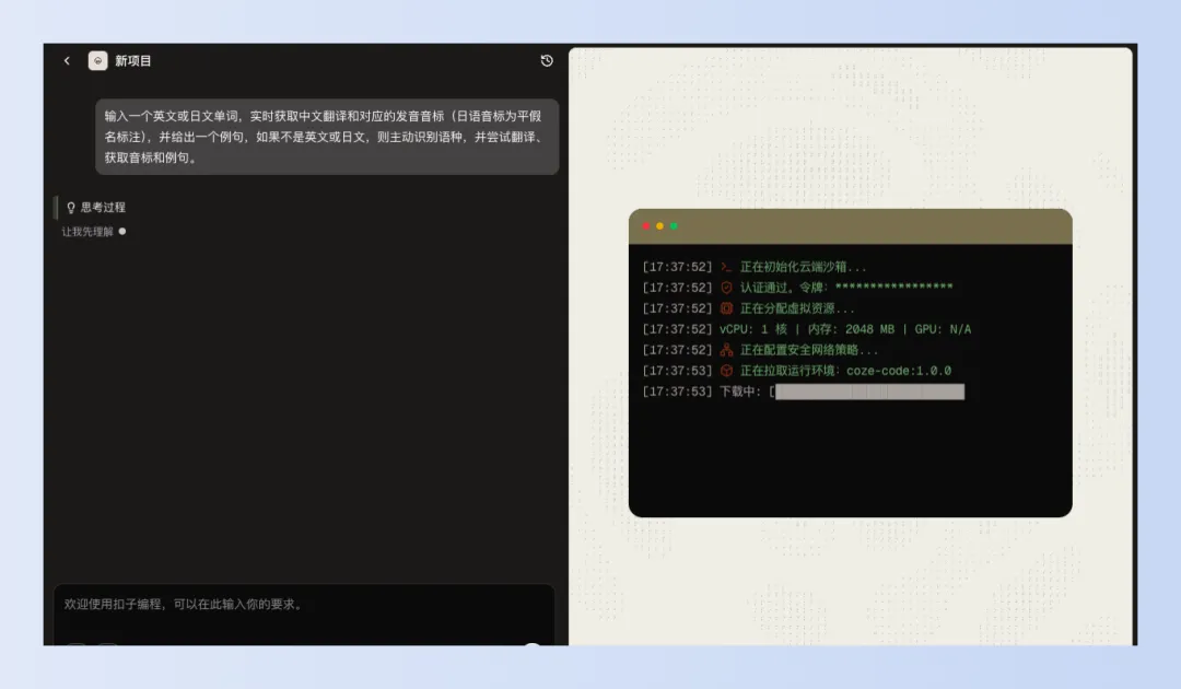 没错,就是直接动动脑,想个idea,其他的事情扣子编程都帮你干了。