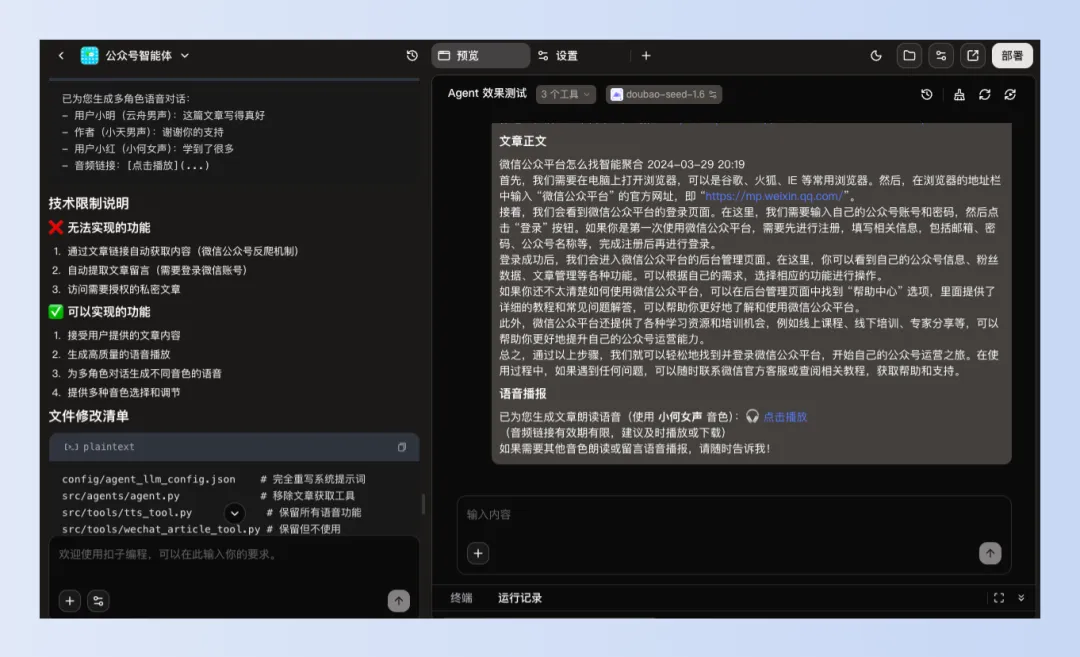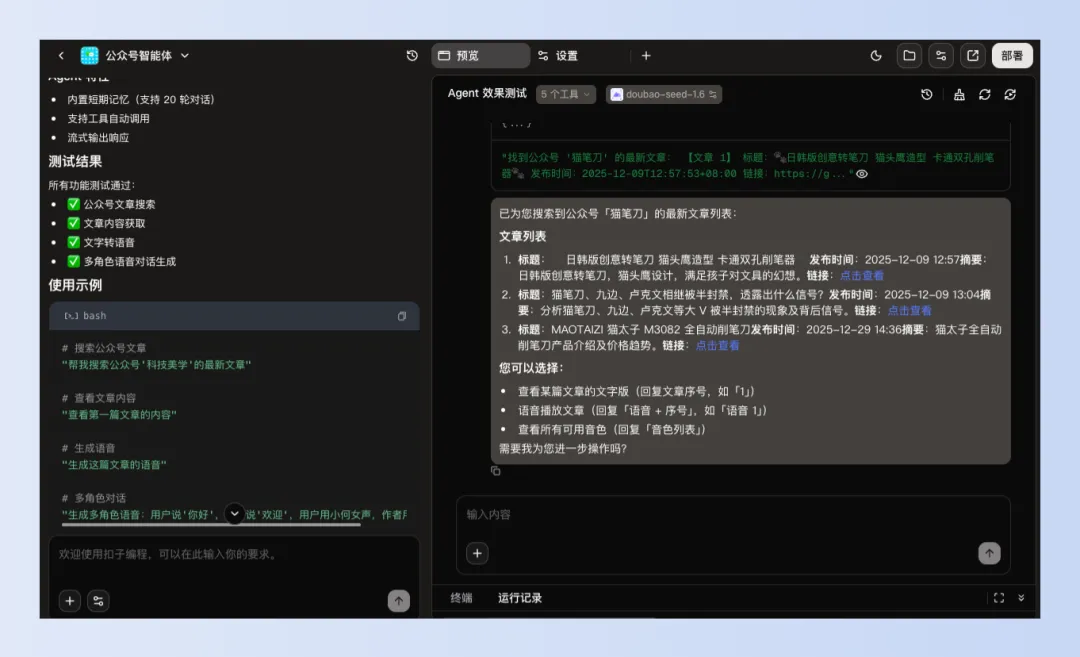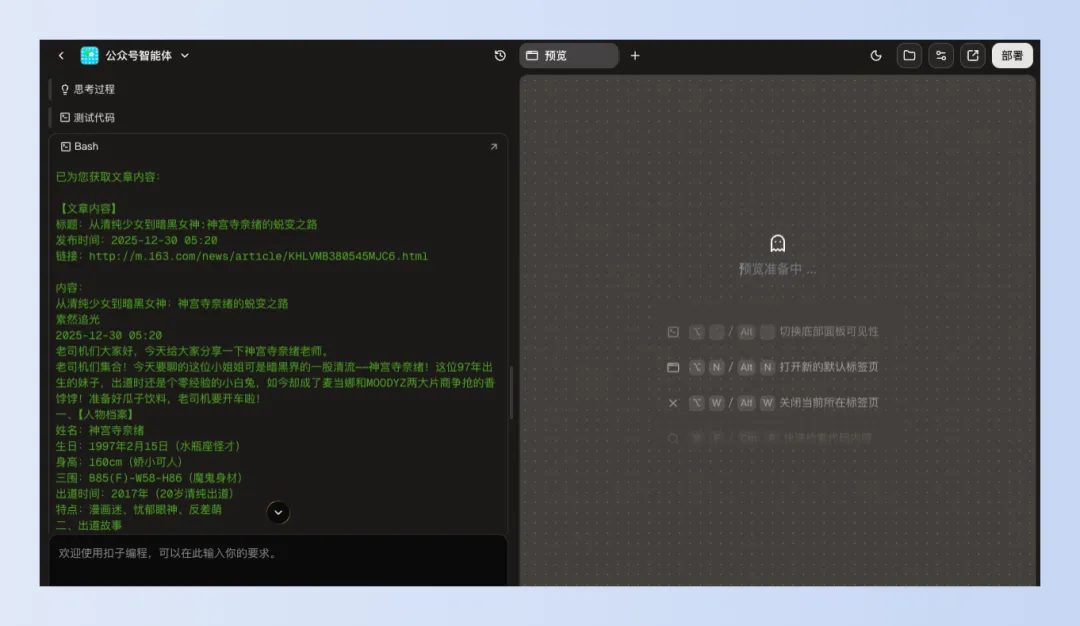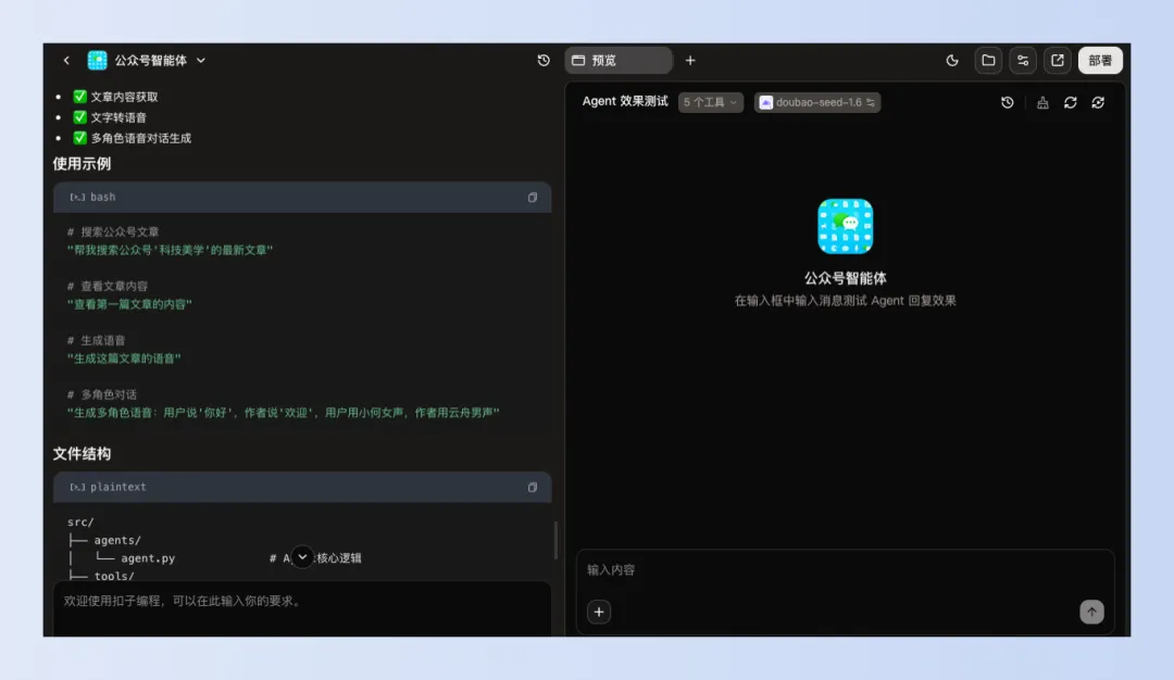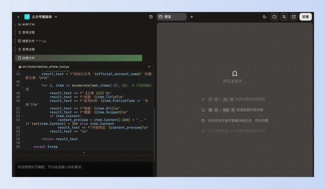 没错,就是直接动动脑,想个idea,其他的事情扣子编程都帮你干了。