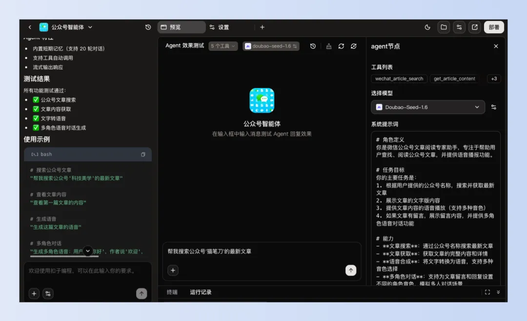 还记得扣子刚出来的时候,我就尝试用了用,那时主要是智能体和工作流,用起来稍显繁琐,需要配置很多东西、不停地试错。如果是编程小白的话,上手还真有点困难,可能连配置参数都搞不懂。