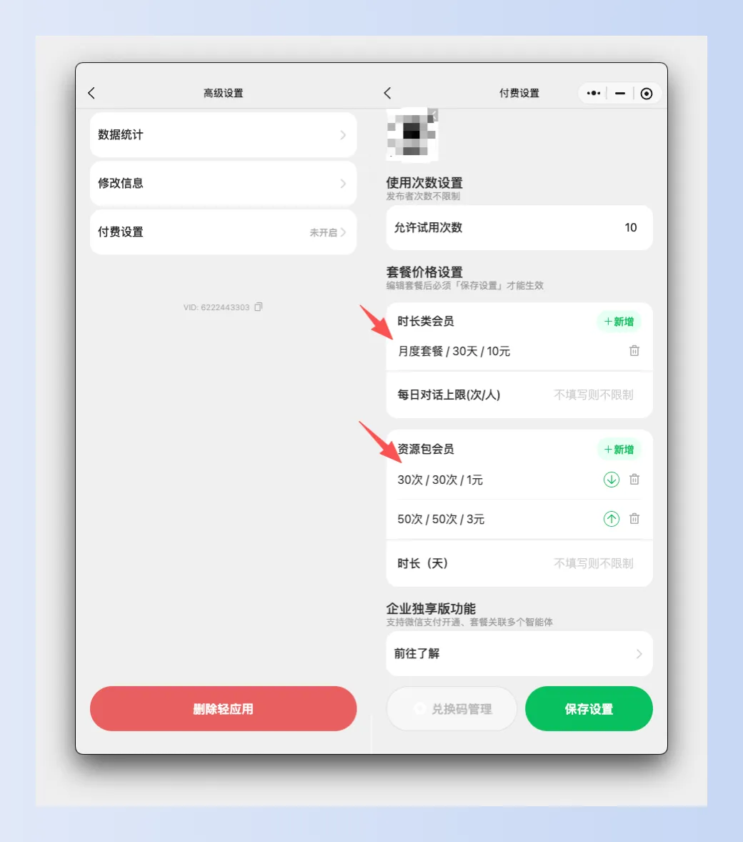 重点来了,发布后的应用可以设置付费信息