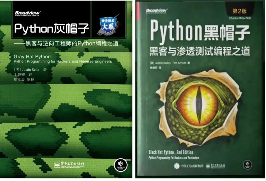 要是对网络安全方向感兴趣,可以看《Python 灰帽子》和《Python 黑帽子》,这两本书的作者是知名安全专家 Justin Seitz。他曾任职于安全公司 Immunity Inc,拥有丰富的安全研究与逆向工程实战经验,书中的内容兼具专业性和实用性。