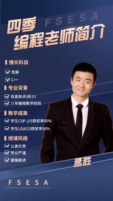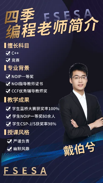 以冲击CSP-J/S竞赛为目标荣誉,为参加信息学奥林匹克竞赛打下基础。我们的课程内容完全对标CSP-J/S的竞赛考点,由NOI金牌教练带领教师团队研发。