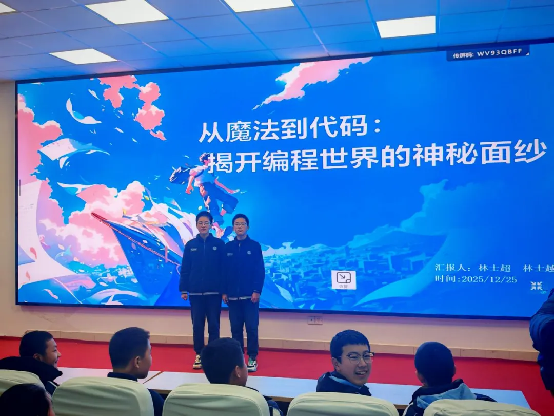 你相信吗?仅凭回答卡片“有”或“没有”,就能准确猜出你的生日。在近日的格致讲堂上,全国编程金奖得主、来自初二(2)班的林士超和林士越同学,就用一场“生日读心术”的展示,让全场惊叹不已。