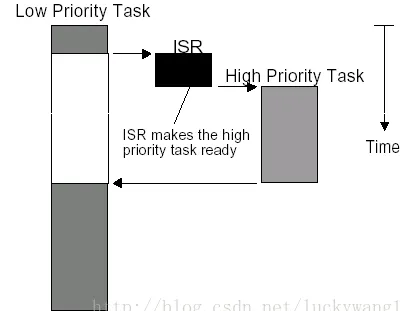 被中断打断,且中断处理程序唤醒了更高优先级任务