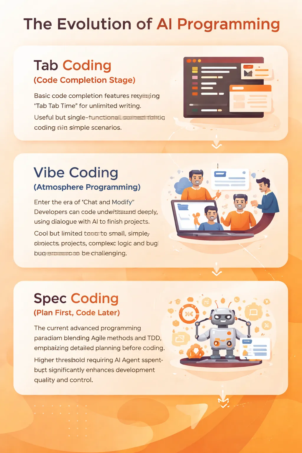 对于个人和企业而言,掌握 Spec Coding 这类结构化开发范式,将显著提升在 AI 时代的竞争力。