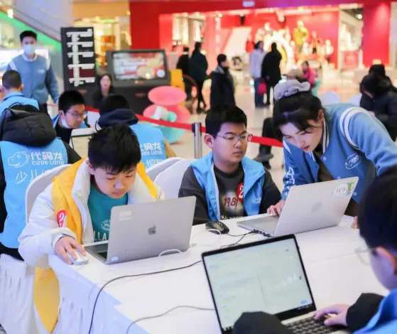 赛场外设立的“编程体验区”是科普宣教的重要窗口。孩子们在志愿者引导下亲身体验编程乐趣,不少家长也借此深入了解少儿编程的教育价值。